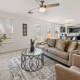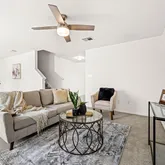 - Interior Features: Ceiling Fan(s), Double Vanity, Eat In Kitchen, High Ceilings, Interior Steps, Open Floorplan, Pantry, Quartz Counters, Walk In Closets