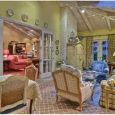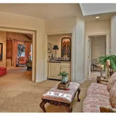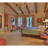 - Supplement: This floor plan offers multiple options for large families or couples. One bedroom wing includes the master bedroom plus an additional ensuite bedroom down the hall. The master is a true retreat with a fireplace, built-in TV cabinet, sitting area with skylight, dry bar & mini-frig, and French doors to a private balcony. Beautifully updated, separate His&Her master baths, make-up vanity, large cedar-lined closets with extra shoe storage & built-in drawer island. Steps from the master bathroom lead to a private entrance out to the spa & pool area as well as a lower level exercise room, sauna, bathroom, and several storage closets. This area has a variety of options including use as a bedroom suite. The other bedroom wing has two ensuite bedrooms, plus an office with a bathroom and French doors to a patio. Just add a closet to create another bedroom!