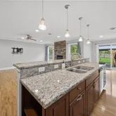 - Interior Features: Breakfast Bar, Ceiling Fans, Dining Area, Entrance Foyer, Separate Formal Living Room, Guest Accommodations, Granite Counters, Home Office, Jetted Tub, Kitchen Island, Kitchen Family Room Combo, Living Dining Room, See Remarks, Sliding Glass Doors, Second Kitchen, Walk In Pantry, Window Treatments, Bedroom On Main Level, Convertible Bedroom, In Law Floorplan, Bath In Primary Bedroom