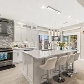 - Kitchen Features: Breakfast Bar, Cabinets White, Eat-in Kitchen, Kitchen Island, Pantry, Stone Counters, View to Family Room, Wine Rack