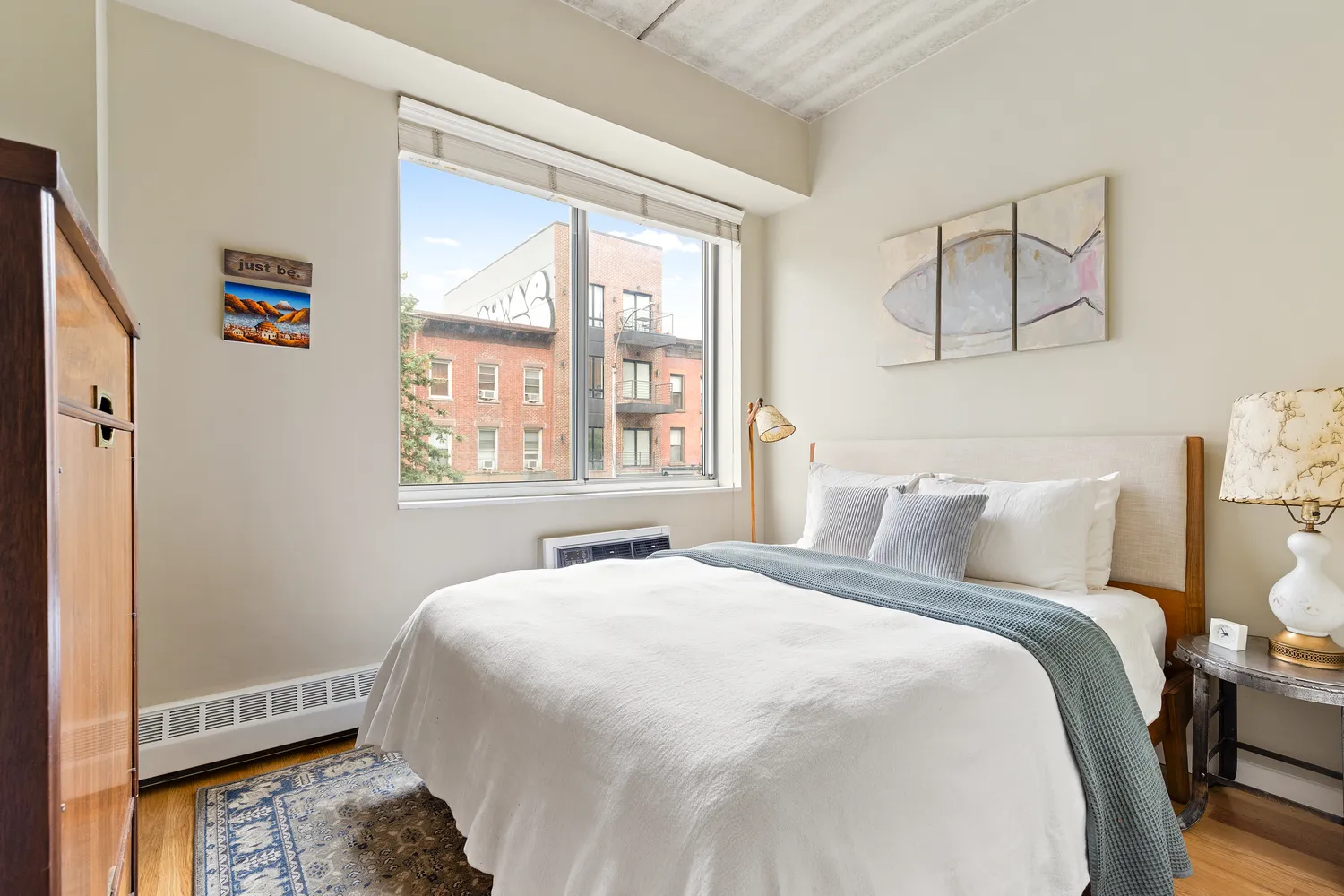 Enjoy the charm of a Juliette balcony, or the building's beautiful rooftop deck, perfect for a breath of fresh air and a view of Manhattan and this great Brooklyn neighborhood. Residents also benefit from part-time super, stroller parking, bicycle storage, and additional designated storage. Experience the elegance of this sophisticated home, blending convenience with tranquil living.