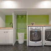 - Laundry Features: Closet/Cabinets - Custom Built, Flooring - Stone/Ceramic Tile, Remodeled, Washer Hookup, Lighting - Overhead, Sink, In Basement