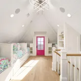 The second floor is home to the spacious primary suite, a sanctuary of calm with an adjoining sitting area that invites you to unwind while overlooking the surrounding conservation. The spa-inspired primary bath features a soaking tub, an oversized walk-in shower, and dual vanities, all crafted with a focus on timeless elegance. Two additional ensuite bedrooms, a conveniently located laundry room, and a light-filled sitting area with an adjoining porch complete this floor. Whether used as a reading nook or home office, the flexible space reflects the thoughtful design found throughout the home.