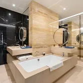 This exceptional half-floor residence at the iconic 53 West 53 presents a rare and remarkable opportunity. Spanning over 4,500 square feet, this expansive home is fully customizable as a three-, four-, or five-bedroom residence, offering unmatched flexibility for discerning buyers. Designed by Pritzker Prize-winning architect Jean Nouvel with interiors by Thierry Despont, the residence is a true showcase of refined detail, elegant craftsmanship, and sophisticated design. With panoramic city views from three exposures, this home delivers stunning vistas and an elevated living experience. Currently configured as a single sprawling residence encompassing over 4,500 square feet, the possibilities for personalization are boundless. The layout includes two grand primary suites, a spacious kitchen in the main section, and a smaller kitchenette perfectly suited for an additional wing. The kitchen is a masterpiece by Molteni, curated by Despont, featuring polished statuary marble countertops, a striking illuminated backsplash, and sleek high-gloss glass cabinetry accented with polished nickel. Top-of-the-line Miele and Sub-Zero appliances include a vented five-burner cooktop, integrated refrigerator/freezer, wall oven, dishwasher, and wine cooler — seamlessly blending elegance with performance. Both primary suites offer generous walk-in closets and spa-inspired en suite bathrooms clad in an exquisite mix of polished Noir St. Laurent marble, honed Verona limestone, and warm golden Persian travertine. These luxurious baths feature radiant heated floors, dual vanities, a deep soaking tub by Lefroy Brooks, a separate glass-enclosed shower, and a private water closet. The three (or four, if preferred) secondary bedrooms each come with their own en suite bathrooms, appointed with refined limestone finishes and gleaming Dornbracht fixtures. Additional highlights include a beautifully designed powder room, a utility closet with vented washer and dryer, and state-of-the-art features such as motorized Lutron shades with blackout options in the bedrooms, bespoke lighting by Despont and Schwinghammer, and continuous circulation of humidified, filtered air. Set within the iconic 53 West 53 tower this luxury residence offers access to an extraordinary suite of services and amenities that redefine elevated living. Located just five blocks from Central Park in the heart of Midtown Manhattan, 53 West 53 provides over 30,000 square feet of world-class offerings designed for wellness, leisure, and culture. Amenities include a cutting-edge fitness center curated by The Wright Fit, complete with sauna, steam, and massage rooms, as well as a squash court, golf simulator, 65-foot lap pool, whirlpool, and cold plunge. Additional features include a children’s playroom, a screening room, wine tasting room, and a private dining room for entertaining. Residents also enjoy exclusive access to 53 by Altamarea Group, the building’s signature restaurant offering refined dining experiences reserved solely for residents. Originally two separate residences, this offering was combined into a single tax lot at closing to create an expansive half-floor home of over 4,500 square feet. The property can be decoupled into two independent units again, following the required legal and building procedures. This provides buyers with a rare level of flexibility — to enjoy it as one sprawling residence or to reconfigure into two distinct homes. Price available upon request.