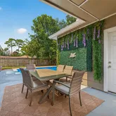 Tucked away on a serene corner cul-de-sac, this beautifully appointed home blends style and comfort with 4 spacious bedrooms, 2.5 baths, and soaring ceilings. The chef’s kitchen, open layout, and sparkling blue pool create the ultimate setting for entertaining or relaxing in luxury. All-tile flooring, no carpet, and pool/yard service included. Ideally located near premier dining, shopping, and major highways. Available fully furnished for an additional cost.Elegant 4-Bedroom Retreat with Private Pool