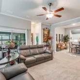 The private...Step into a beautifully designed open concept home where the living, dining, and kitchen spaces flow seamlessly together to create a bright, functional environment ideal for both everyday living and entertaining. Expansive natural light enhances the spacious living area. The kitchen serves as the heart of the home, featuring granite counter tops, a large center island, breakfast bar seating, built in cabinetry, generous prep space, and a walk-in pantry designed for convenience and storage.