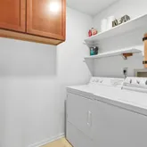 - Room Description: Laundry room with shelves and cabinets including washer and dryer