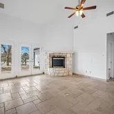 - Fireplace Features: Stone, Wood Burning