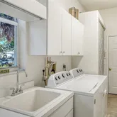 Complete with a two-car garage and additional storage, this residence is designed for both comfort and convenience.