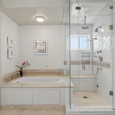 - Room Bathroom Features: Stone Counters, Closet in bathroom, Walk-in shower, Main Floor Full Bath, Jetted Tub, Bathtub, Remodeled