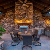 - Interior Features: Air Purifier, Bar, Beamed Ceilings, Central Vac-Plumbed, Data Wiring, Eat-in Kitchen, Gas Fireplace, Formal Dining, Garage Door Opener(s), Garden Tub, Granite Counters, Humidifier, Jetted Tub, Liv/Din Combo, Live on One Level, Master On Main, Raised Ceilings 9+ft, Security System, Skylight(s), Sound Wired, Utility Sink, Water Pur. System, Wet Bar