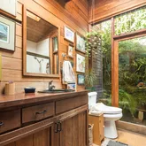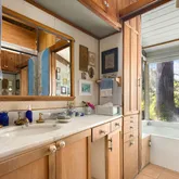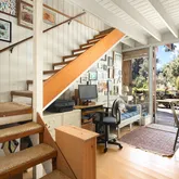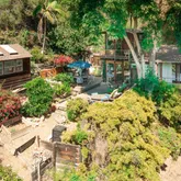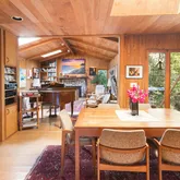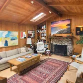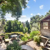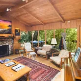 This charming hideaway in Rustic Canyon is located on appropriately-named Rustic Road, which has a stream running through its center. One approaches the home by some stairs and a leisurely, gated footpath, passing through fruit trees and flowers. The hideaway, on four lots, nearly one-half acre, is reminiscent of Northern California. It has inspired many artists who lived there, up to and including the present. There is now a fully equipped art studio in the garden. One of the artists was Brett Weston....This charming hideaway in Rustic Canyon is located on appropriately-named Rustic Road, which has a stream running through its center. One approaches the home by some stairs and a leisurely, gated footpath, passing through fruit trees and flowers. The hideaway, on four lots, nearly one-half acre, is reminiscent of Northern California. It has inspired many artists who lived there, up to and including the present. There is now a fully equipped art studio in the garden. One of the artists was Brett Weston. He installed a dark room for his father, the photographer Edward Weston, creator of many world-famous images. The living room, with its high ceilings, large windows, skylights, oak floors, and rustic fireplace creates an atmosphere of peace and contentment. In addition to the living room, there are also skylights throughout the rest of the house: Both bathrooms, dressing room, dining room, and kitchen. The master bedroom, with its floor to ceiling windows, allows near view of foliage and trees of various shades of green, and distant views of hills and sky. The views can also be enjoyed from the windows and balconies in other rooms as well as the deck and the patio. There are two bedrooms, a den, a bonus room, two full baths (one leading to a charming small, private garden, the other with a Jacuzzi tub), and a freestanding art studio/office/home gym. Each room has a deck or balcony. This charmer is located less than a mile from the beach, four restaurants, Canyon Elementary School, and Rustic Canyon Recreation Center. It is a seven-minute drive to Santa Monica and Pacific Palisades. Four Parcels: 4410-015-013, 4410-015-014, 4410-015-015 & 4410-015-016