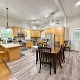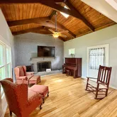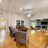 Welcome to this beautifully unique 4-bedroom, 3-bath home situated right in the heart of Malone! Thoughtfully designed with character and comfort in mind, this property blends timeless charm with modern convenience. Step inside to find a spacious open-concept layout featuring a large kitchen with custom wood cabinetry and solid surface countertops, flowing seamlessly into the living and dining areas—perfect for everyday living and entertaining. Bamboo wood flooring adds warmth and elegance, while the original tongue-and-groove wood wall coverings give the home a distinctive, cozy feel. Most rooms boast soaring 12-foot ceilings, enhancing the home's open and airy atmosphere. The versatile 4th bedroom, located just off the main living area with French doors, offers the perfect setup for a guest room, home office, or studio. A second living space showcases a stunning vaulted wood ceiling, a floor-to-ceiling brick fireplace, and direct access to an expansive concrete patio—ideal for outdoor gatherings. The master suite features its own ensuite bathroom and a private sitting area between the two spaces, offering potential for a walk-in closet, reading nook, or quiet retreat. Outside, enjoy a fully privacy-fenced backyard, a wood-framed storage building, a deep covered front porch, and an attached carport. This charming and spacious home has all the room you need, inside and out. Don't miss your chance to own a piece of Malone living—schedule your private tour today!