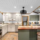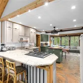 - Kitchen Features: Breakfast Bar, Eat-in Kitchen, Kitchen Island, Solid Surface Counters, Stone Counters, View to Family Room