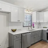 - Kitchen Features: Cabinets White, Stone Counters, View to Family Room