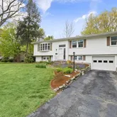 Move right into this lovely, updated & expanded 9 rm, 4 brm, 2.5 bth Split in wonderful cul de sac neighborhood! Fireplaced living rm w/cathedral ceiling, hardwood flr & bow window! Formal dining rm w/hardwood flr, cathedral ceiling & arched opening to beautiful 23x16 family rm addition w/cathedral ceiling, 2 skylts, Vermont Casting gas stove, hardwood flr, custom built cabinet w/granite, 2 sliders & French door to 2 tiered deck! Updated Cherry Kit w/gas cooking, rec lts & granite breakfast bar opening...Move right into this lovely, updated & expanded 9 rm, 4 brm, 2.5 bth Split in wonderful cul de sac neighborhood! Fireplaced living rm w/cathedral ceiling, hardwood flr & bow window! Formal dining rm w/hardwood flr, cathedral ceiling & arched opening to beautiful 23x16 family rm addition w/cathedral ceiling, 2 skylts, Vermont Casting gas stove, hardwood flr, custom built cabinet w/granite, 2 sliders & French door to 2 tiered deck! Updated Cherry Kit w/gas cooking, rec lts & granite breakfast bar opening to family rm! Main level has 3 bdrms all w/hardwood flrs under carpet! Master brm w/updated 1/2 bath! Lower level has 4th bedrm w/fireplace & loads of closets, Full bath & office! Extra storage & workshop in unfinished space! Updates include gas heat in 2012, gas water heater in 2016, skylts in 2015, Metal roof in 2016 w/transferable warranty, Central air in 2017 & more! Gorgeous private 1/2 acre lot abutting Town field! Great location, walk to schools & mins to all major rts & shopping!