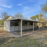 - Exterior Features: Patio Slab, Covered Patio, Partial Sprinkler System, Double Pane Windows, Storage Building/Shed, Has Gutters, Mature Trees, Wire Fence, Workshop, Ranch Fence