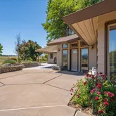 HOME: The home has a center, which is the heart of the home, an east wing and a west wing, Built in 1976. 3208 +/- sq ft with 4 bedrooms and 4 baths. CENTER: Main entry into living room, with a unique blue tile pot belly design wood stove, tile flooring, wet bar, floor to ceiling windows and skylight. Opens to the Vista room, west wing and family room. Vista Room features wood flooring, full wall of floor to ceiling windows with two sliders to back deck. Side door leads to sunroom. Vista room also has two glass doors opening to family room. Living room and vista room can be separated by unique accordion sliding panels. Both rooms are under a vaulted octagon wood celling. Family room is an open space with kitchen, dining area and lounge. Wood burning insert in wood and tile hearth plus gas stove on tile hearth. New luxury vinyl flooring. Remodeled kitchen is a delight, bright and airy. European finish thermofoil cabinets with under cabinet lighting, most uppers have clouded glass fronts, quartz counters, all stainless appliances including refrigerator with ice and water dispenser, dishwasher, 6 burner gas range with electric oven, side warming door, built in microwave and under counter pull out garbage drawer. Pantry with accordion doors. Kitchen flows to dining area and into lounge with built in shelving and bookcase. Glass door opens to huge concrete patio and decking. WEST WING: Owner's suite, office, large bedroom, 2 baths, 5 closets, laundry & linen. EAST WING: off family room, 2 bedrooms, bath, office, guest suite with bath. Attached 2 car garage. There are two heating and air units, 2 on demand hot water heaters. new exterior paint 2023. Extensive decking and patios surround home. GUEST HOUSE, open kitchen, dining and living space, upstairs bedroom. ADDITIONAL PROPERTY INFORMATION: