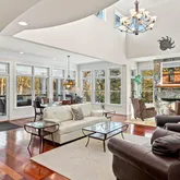 The home’s striking curb appeal features low-maintenance granite stone, Hardie Plank siding, and Azek trim. A new concrete paver front walkway, covered front porch & side walkway were installed in the fall of 2025. Your back exterior and yard create a private outdoor sanctuary, headlined by a stunning saltwater pool with a tranquil rock waterfall. Relax on the expansive, IPE wood rear covered porch, perfect for al fresco dining or sipping morning coffee while overlooking lush, serene surroundings.