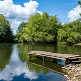 - Lot Features: Pond on Lot, Fruit Trees, Lake View, Pond/Lake, Waterfront, Wooded
