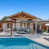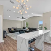 - Interior Features: Built-in Features, Ceiling Fan(s), Chandelier, Separate Formal Dining Room, Eat In Kitchen, High Speed Internet, Kitchen Island, Multiple Living Areas, Multiple Dining Areas, No Interior Steps, Open Floorplan, Pantry, Quartz Counters, Recessed Lighting, Sauna, Vaulted Ceilings, Walk In Closets