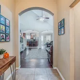 - Interior Features: Double Vanity, High Ceilings, Kitchen Island, Solid Surface Counters, Soaking Tub, Separate Shower, Ceiling Fans, Programmable Thermostat