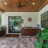 - Exterior Features: Balcony, Irrigation System, Lighting, Outdoor Kitchen, Outdoor Shower, Rain Gutters, Sidewalk, Sliding Doors