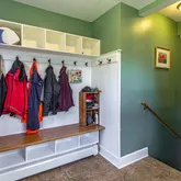 - RoomDescription: Main level mudroom with tile floor and storage.