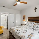 - Interior Features: Attic Stairs Disappearing, Ceiling 9ft+, Ceiling Fan, Ceiling Smooth, Ceiling Trey, Security System Leased, Smoke Detector, Walk In Closet
