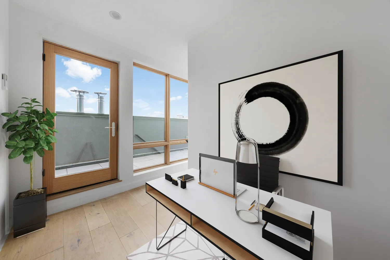 A coat closet and powder room welcome you into the foyer of your castle in the sky. The kitchen is bathed in sunlight, featuring an in-wall...Perched on the top three floors of this newly developed townhouse condo is a sunny and bright TRIPLEX with three (3) bedrooms, a dedicated home office/sunroom, two and a half (2.5) bathrooms, three (3) outdoor spaces, and deeded storage in the building. Every single room in this home has a window and individual heating and cooling controls through a ductless system.