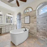 - Additional Br/Bath Info: 1 or More BR Down, Primary Down, Vaulted/Coffered Primary, Split Bedroom Plan, Luxury Primary Bath, Double Vanity Bath, Separate Tub & Shower, Full Bath Down, Half Bath Down