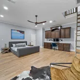 - Office Description: Hardwood Floor, Level 1, Shared Bath, Smooth Ceiling, Vaulted/Coffered Ceilings