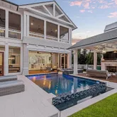 Every detail of this expansive Chris Stoyles, Turner Legacy custom home has been thoughtfully curated. From the imported Marquis cabinetry, kallista sinks, euro doors, automated window treatments, $100,000 in upgraded elevated AV system with sound wired inside and out, cell boost in every room, GENERAC generator, separate cabana with outdoor fireplace and pecky cypress mantle, infared heaters, media center, heated infinity edge pool, and spa The home features an elevated AV control four system, three fireplaces, two laundry suites, custom mahogany doors and barn doors, two wet bars, custom maple stairs, Sub Zero, Wolf, Fisher & Paykel appliances, Kohler fixtures, and custom furnishings curated by Nest Interiors, NYC.