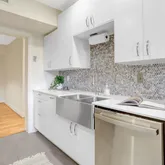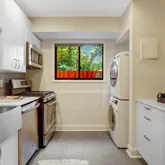 This gem has over 1,200 sf with engineered hardwood throughout. The updated kitchen is a true highlight, featuring contemporary finishes and all the essentials for whipping up your favorite meals. Enjoy the convenience of an in-unit washer/dryer, making everyday living a breeze.