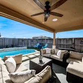 - Exterior Features: Covered Patio, Deck, Fully Fenced, Fence, Sprinkler Irrigation, Porch, Patio, Storm Security Shutters