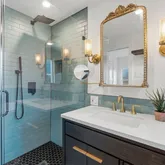 - Room Description: Modern, spa-inspired ensuite bath in the back house; Beautiful single vanity, contemporary fixtures and hardware, and a walk-in shower with frameless glass and designer tile surround