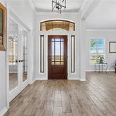 - Interior Features: AllBedroomsDown, CeilingFans, CrownMolding, DiningArea, SeparateFormalDiningRoom, DoubleVanity, GardenTubRomanTub, HomeOffice, InLawFloorplan, PrimaryDownstairs, MainLevelPrimary, OpenFloorplan, RecessedLighting, SeeRemarks, SoakingTub, SeparateShower, WalkInClosets, BreakfastBar, BreakfastArea, GraniteCounters, KitchenFamilyRoomCombo