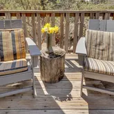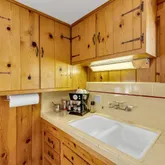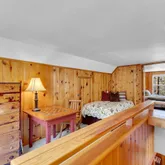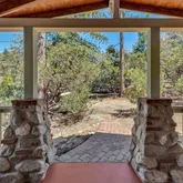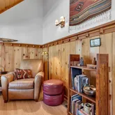1957 Craftsman Bungalow is sited beautifully on a level lot among pines, cedars, manzanita, lilacs + gorgeous large oaks. A deep gabled porch, dormer window, stone piers + cedar shingles will have you charmed! The flat useable lot, views of Lily Rock, sunshine + mountain breezes offer plenty of places to relax + savor the mountain lifestyle. Meticulously maintained, this 1,025 SF, 2Bdm/1.5Bth cabin is fully furnished + move in ready. Pine paneled reading nooks w/views + an open living room w/the original rock fireplace provides ample space to enjoy your friends + family. The charming kitchen finds pine cabinets, classic tile counters, restored O'Keefe and Merritt range, natural Marmoleum flooring, plus built-in dining nook. A light and bright bedroom has plenty of storage and tree top views. The main floor bath brings vintage charm, w/bright period tile. The loft has space for two twin beds, a half bath + the second bedroom, all w/wood paneling + more views. The eye for detail is found throughout, creating the ultimate in mission style bungalow living. Ideally located in a quiet neighborhood, yet close to all Idyllwild has to offer. Note: items with a red dot will not be included.