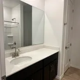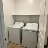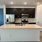 The kitchen is a true standout, featuring 42-inch contemporary espresso sained shaker-style cabinets, upgraded hardware, and pristine white quartz countertops. The mosaic marble look backsplash brings everything together. All essential appliances are included i.e. refrigerator, microwave, gas range, dishwasher, and washer/dryermaking this home move-in ready. Upgraded brushed nickel fixtures in the bathrooms and door hardware add a modern touch, while the white sand quartz bathroom countertops keep for a cohesive look throughout.