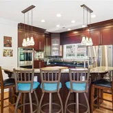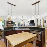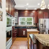 - Kitchen Features: Cabinets Stain, Kitchen Island, Pantry Walk-In, Stone Counters, View to Family Room, Wine Rack