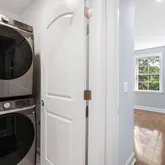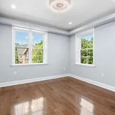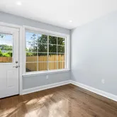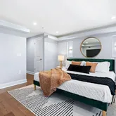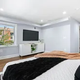 The crown jewel of this home is the third-floor primary suite, offering a private oasis away from the rest of the living spaces. This expansive suite features a generous bedroom area with ample natural light, providing a tranquil retreat. The suite also includes a walk-in closet with custom shelving, offering plenty of storage space. The en-suite bathroom is a masterpiece of modern design, featuring a large walk-in shower with high-end fixtures, a double vanity with elegant finishes, and luxurious tile work that adds to the overall sense of serenity and luxury.