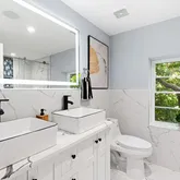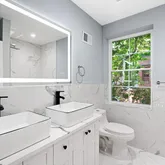 The bathrooms have been completely transformed with modern fixtures and luxurious touches. Each bathroom offers a spa-like experience with high-quality tiles, stylish vanities, and sophisticated lighting, ensuring a serene and refreshing environment.
