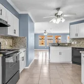 - Interior Features: Breakfast Bar, Crown Molding, Granite Counters, High Ceilings, Kitchen Family Room Combo, Pantry, Self Closing Cabinet Doors, Self Closing Drawers, Soaking Tub, Separate Shower, Tub Shower, Ceiling Fans, Programmable Thermostat