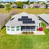 linen closet. The split bedroom design ensures comfort and privacy for guests. Additional upgrades include: solar panels (2020), double-pane storm-rated windows and sliders (2021),