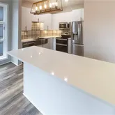 - Kitchen Features: Breakfast Bar, Cabinets White, Kitchen Island, Solid Surface Counters, View to Family Room