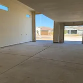 A standout feature is the impressive 2-car tandem garage plus additional RV garage space, ideal for car enthusiasts or additional storage needs. The 2-car tandem garage plus additional RV garage space also features a service door providing easy access to the backyard. The home's modern desert style exterior is complimented by tasteful desert front landscaping and a stylish paver driveway, offering an inviting first impression.