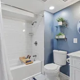 - Appliances: Dishwasher, Disposal, Refrigerator, Stainless Steel Appliances, Washer, Dryer, Dual Flush Toilets, Exhaust Fan, Icemaker, Microwave, Oven - Single, Oven/Range - Gas, Stove, Water Heater