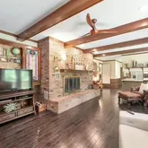 - Interior Features: Beamed Ceilings, Blown/Textured Ceilings, Bookcases, Breakfast Bar, Ceiling Fan(s), Ceramic Tile Shower, Crown Molding, Eat-in Kitchen, Entrance Foyer, Fiber Glass Shower, Kitchen Island, Soaking Tub, Tub Shower Combo