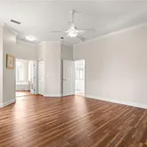 - Interior Features: Ceiling Fan(s), Crown Molding, Eating Space In Kitchen, High Ceilings, Kitchen/Family Room Combo, Open Floorplan, Solid Wood Cabinets, Split Bedroom, Stone Counters, Thermostat, Tray Ceiling(s), Walk-In Closet(s), Window Treatments