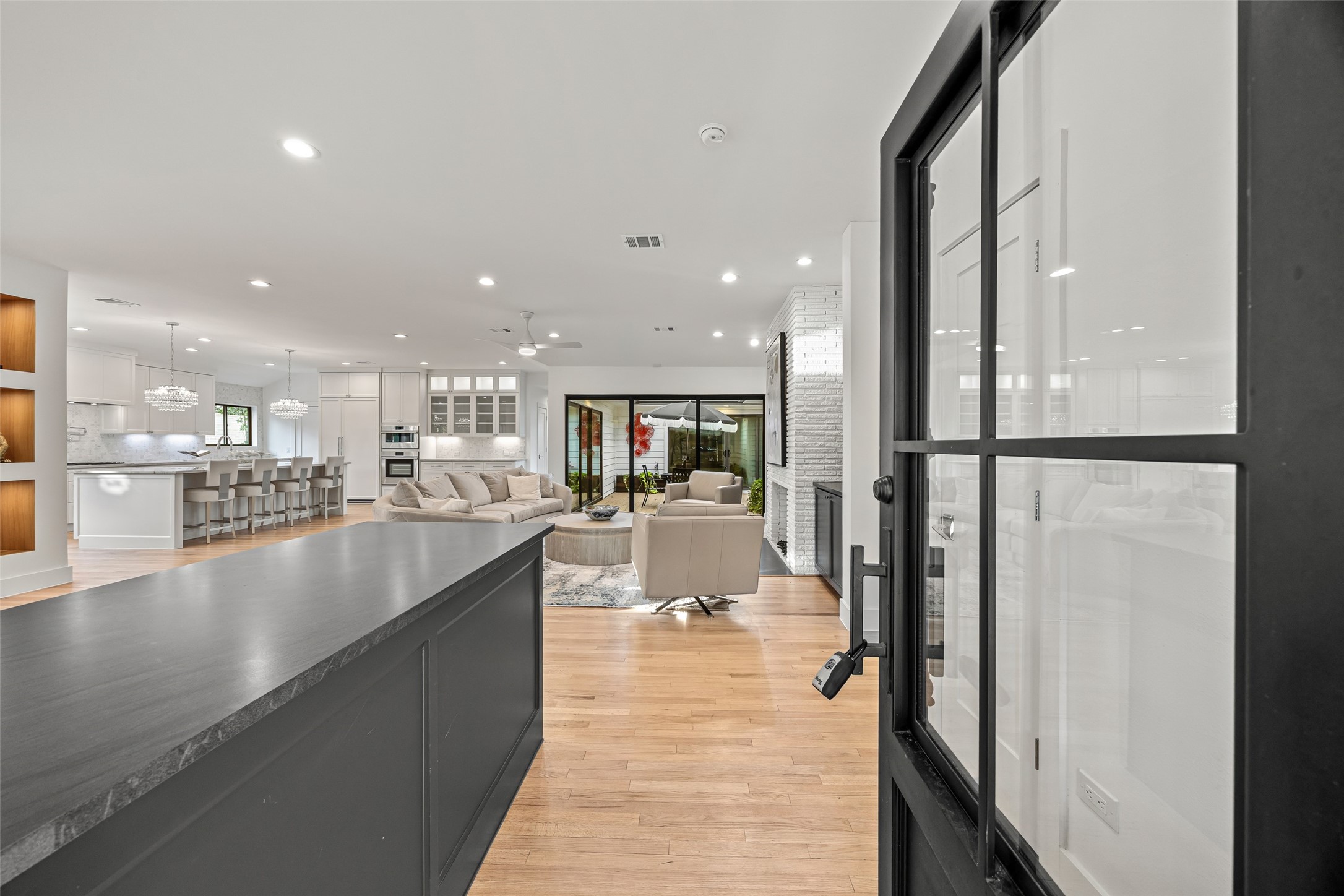 - Directions: Additional highlights include: • A chef-style kitchen with large walk-in pantry and butcher-block prep station • Elegant living spaces designed for both everyday comfort and elevated entertaining • Designer bathrooms with curated tilework, premium fixtures, and custom cabinetry • Wide-format hardwood floors flowing throughout the home • Massive backyard with endless possibilities—pool, guest h court, or garden • Large detached structure, ideal for guest quarters, office, or